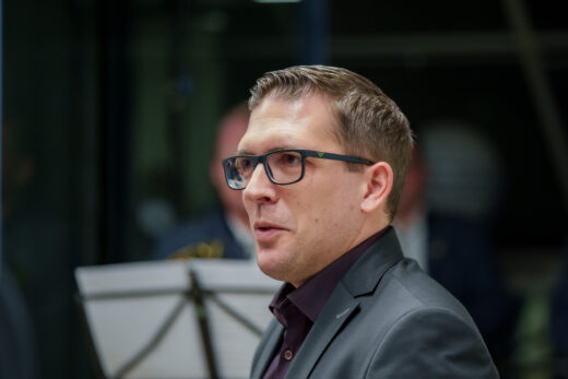 Nach der Rede und einem weiteren Musikstück ergriff Hausherr Bürgermeister Dominik Männle das Wort und bedankte sich beim Club für die Beiträge, welche das Rathaus bis Mai 2026 schmücken werden.