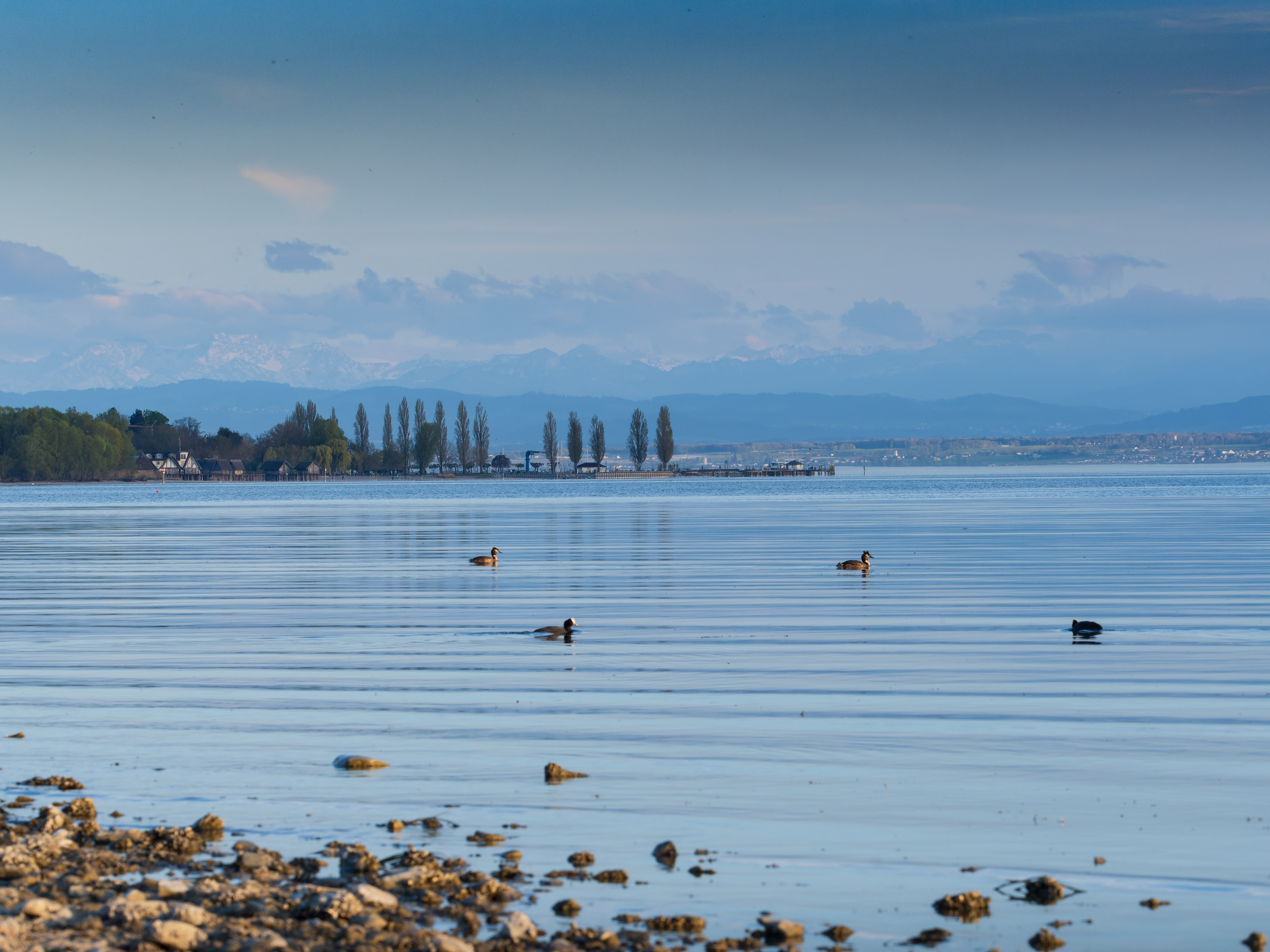 Auf dem Bild spiegelt sich eine besondere Stimmung des ruhigen Bodensees, das Licht ist warm, weich und verleiht der Szene eine fast magische Ruhe.